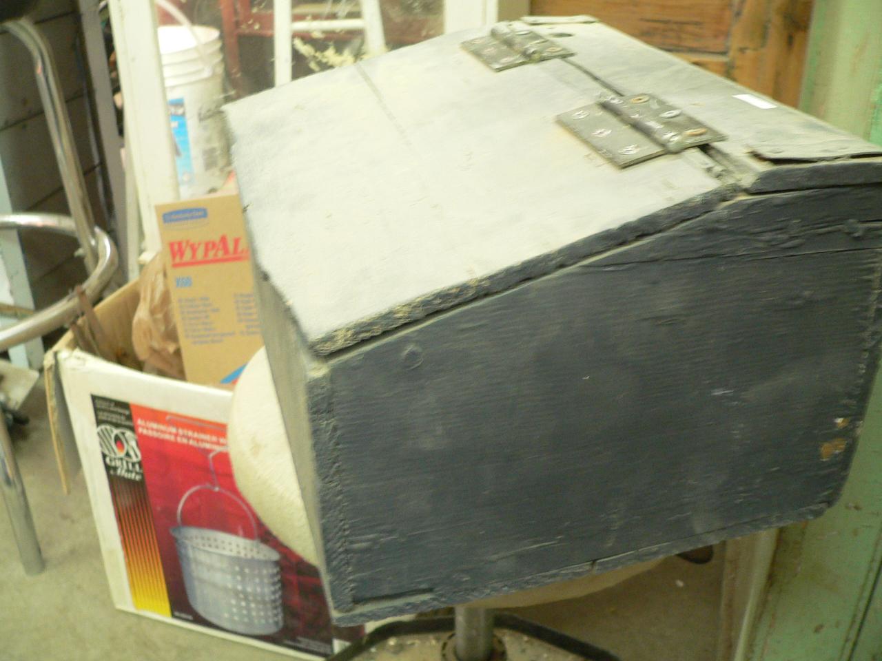 Boite de bois fermé # 3543 13"1/8L x 10''P x 7"H boite a épingle a linge antique ou autre 25$