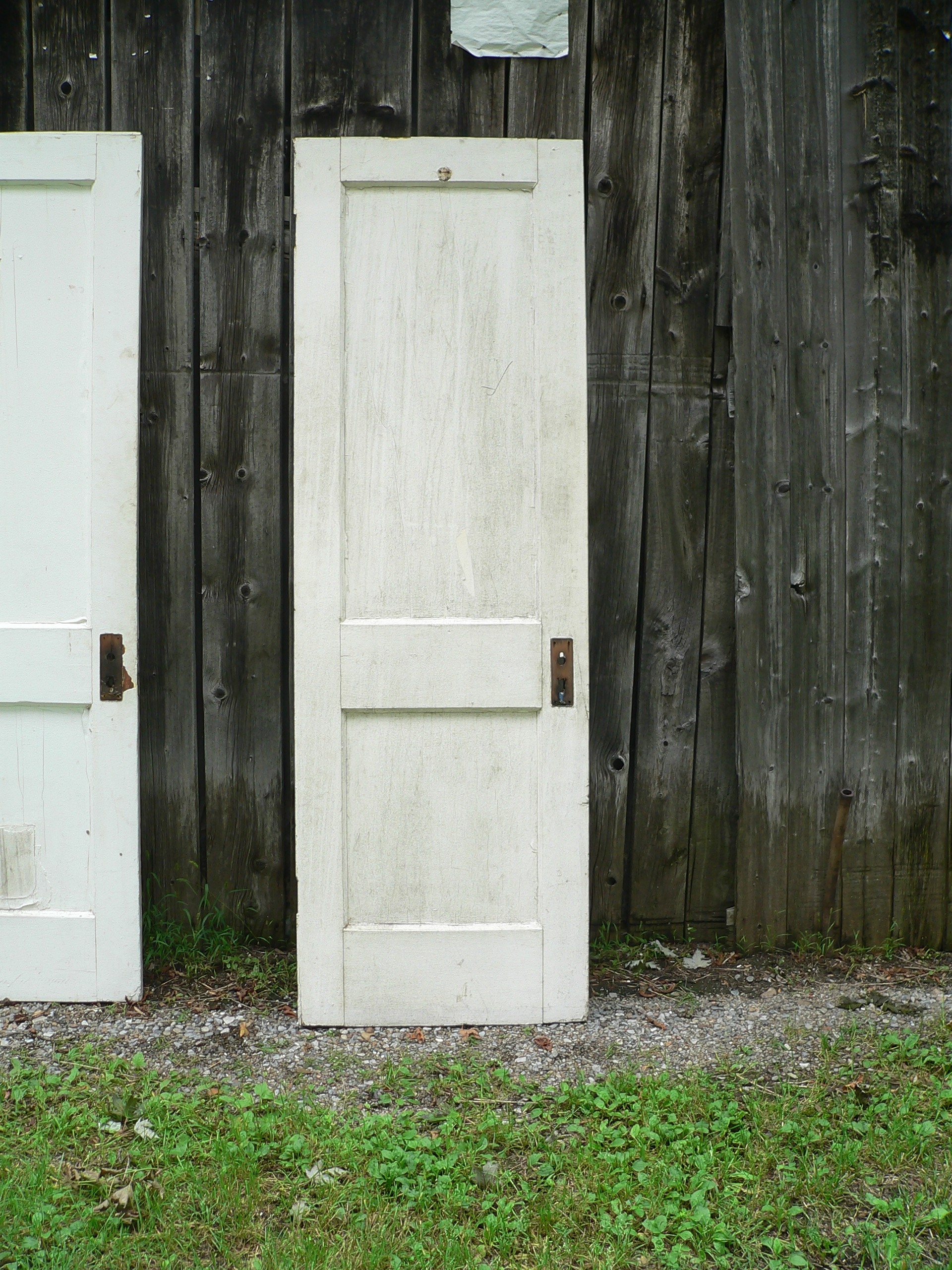 Porte antique a caisson # 8262 et 4 caisson en treillis dont 1 défoncer a réparer 31" x 83"1/2 80$ -