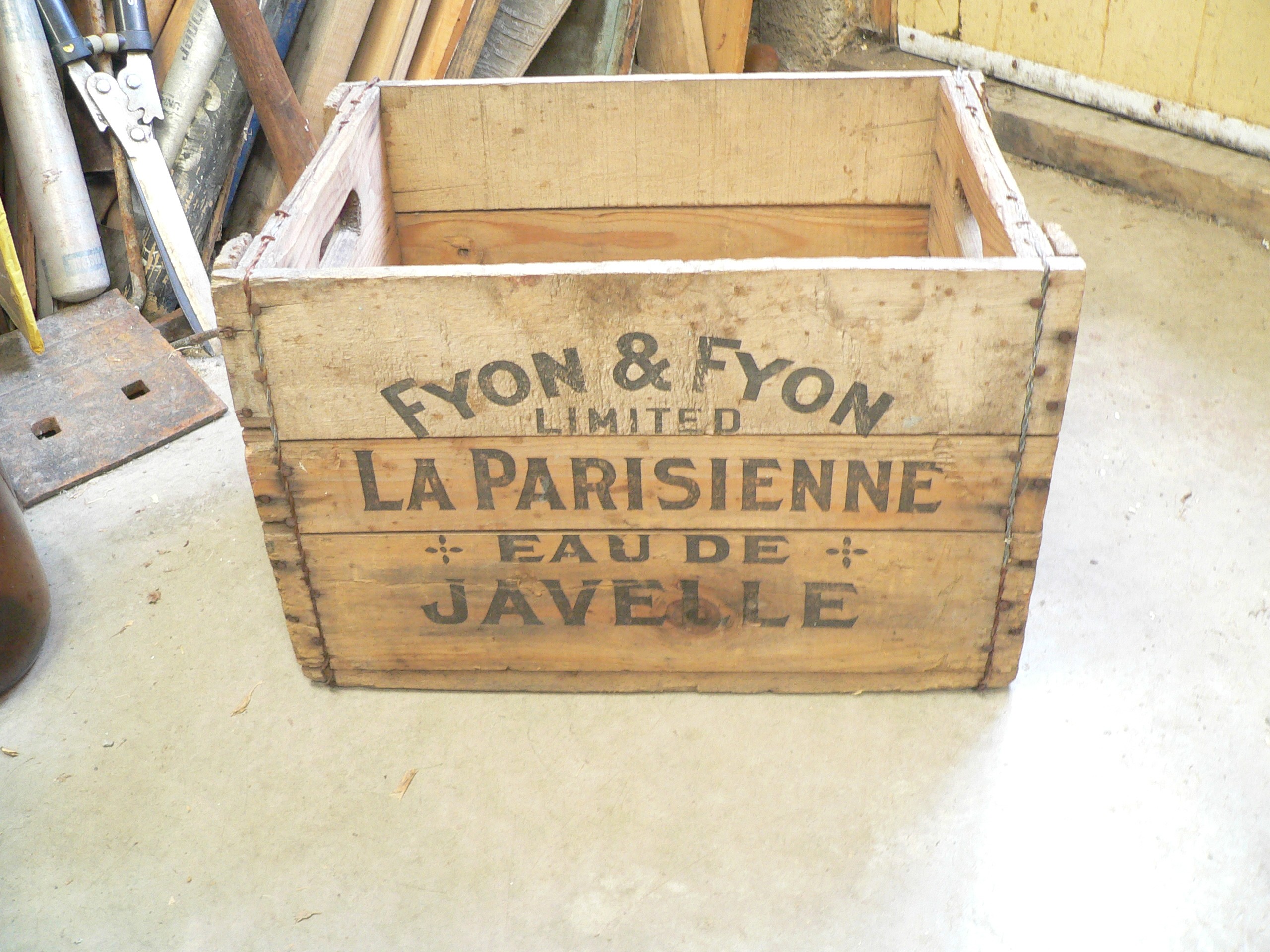 Caisse eau de javelle la parisienne # 12509.11 antique Fyon & Fyon 18" x 12"1/2 x 12" H 50$