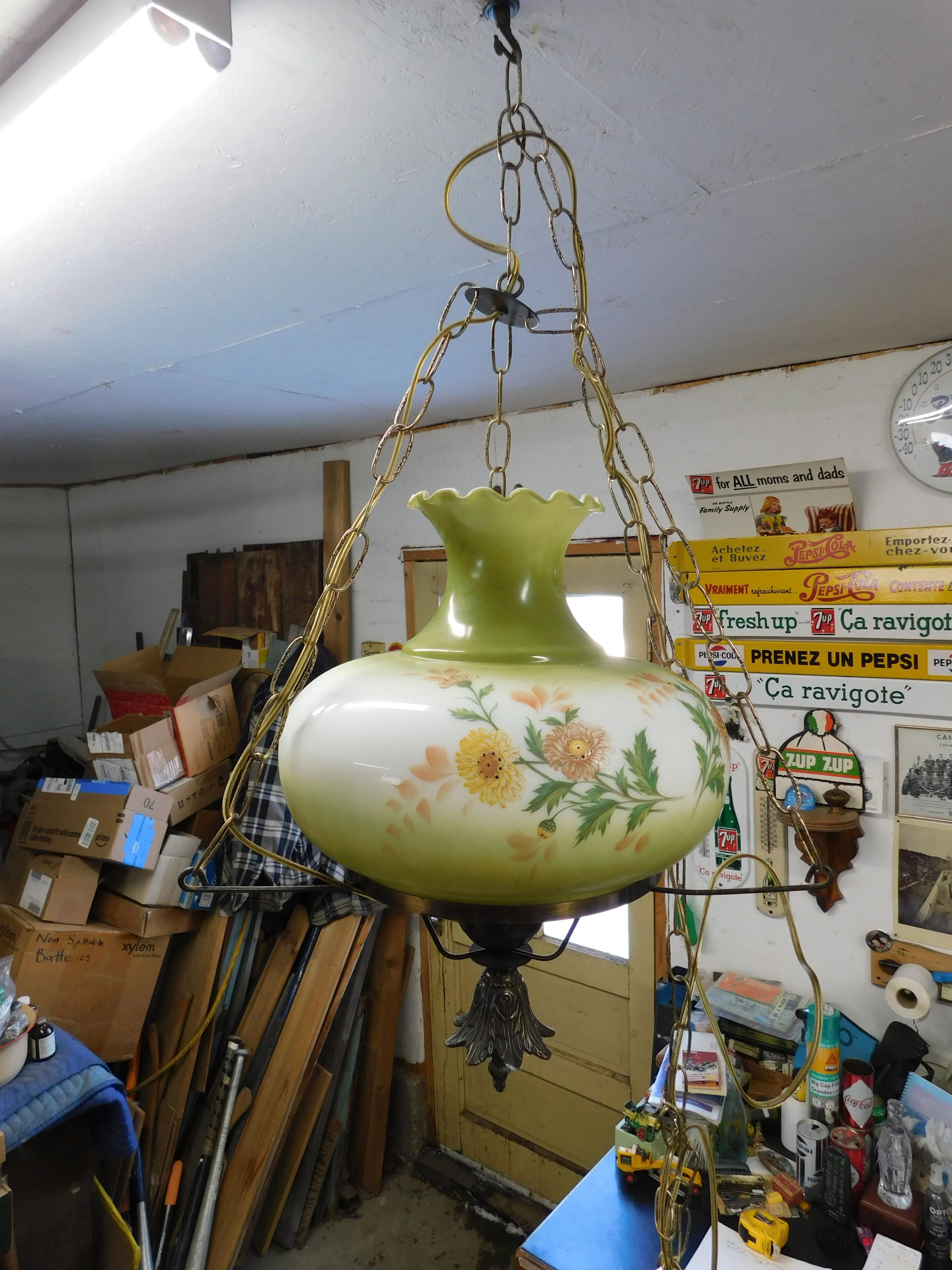 Belle lampe suspendu vintage # 13142.6 fonctionnel 17" dia. x 26" haut environ belle condition 50$