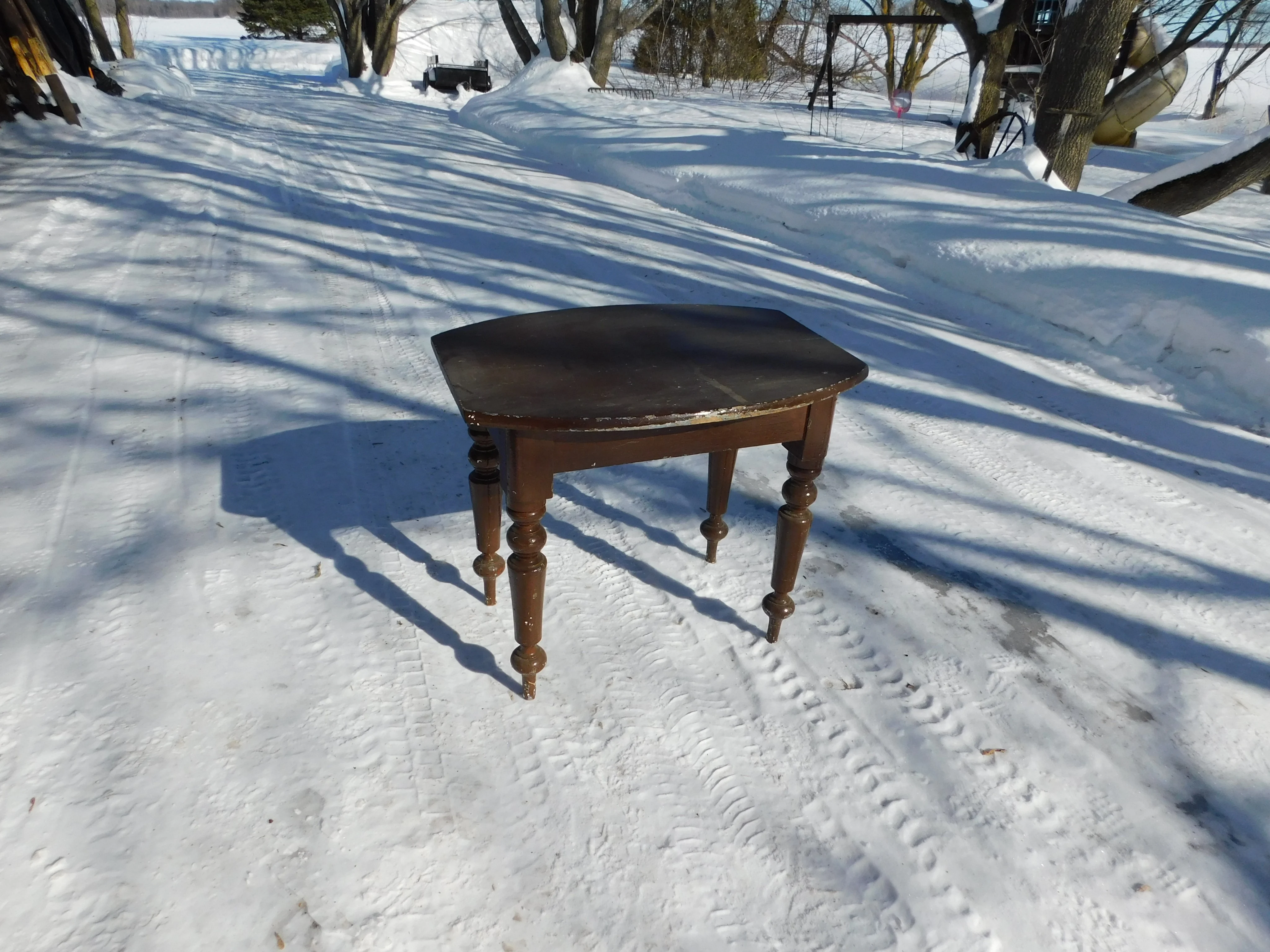 Belle table antique en pin # 13133 solide avec de belle patte 32" x 23"3/4 x 27" haut 100$